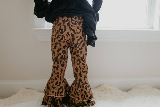 Kids Leopard Double Denim Ruffle Pant Jeans