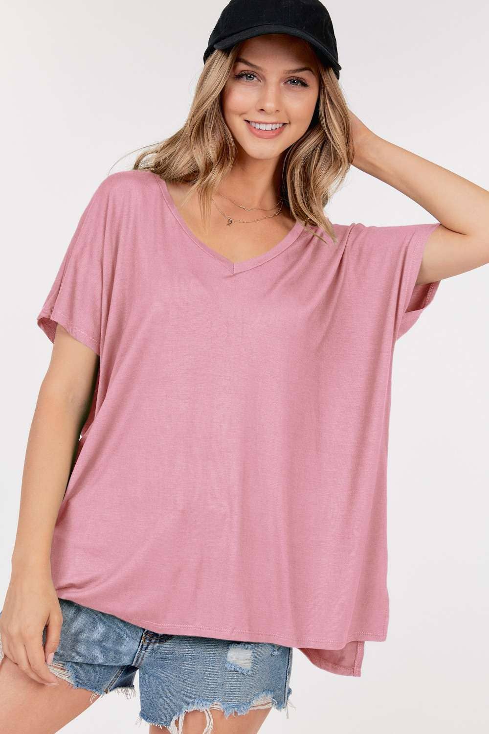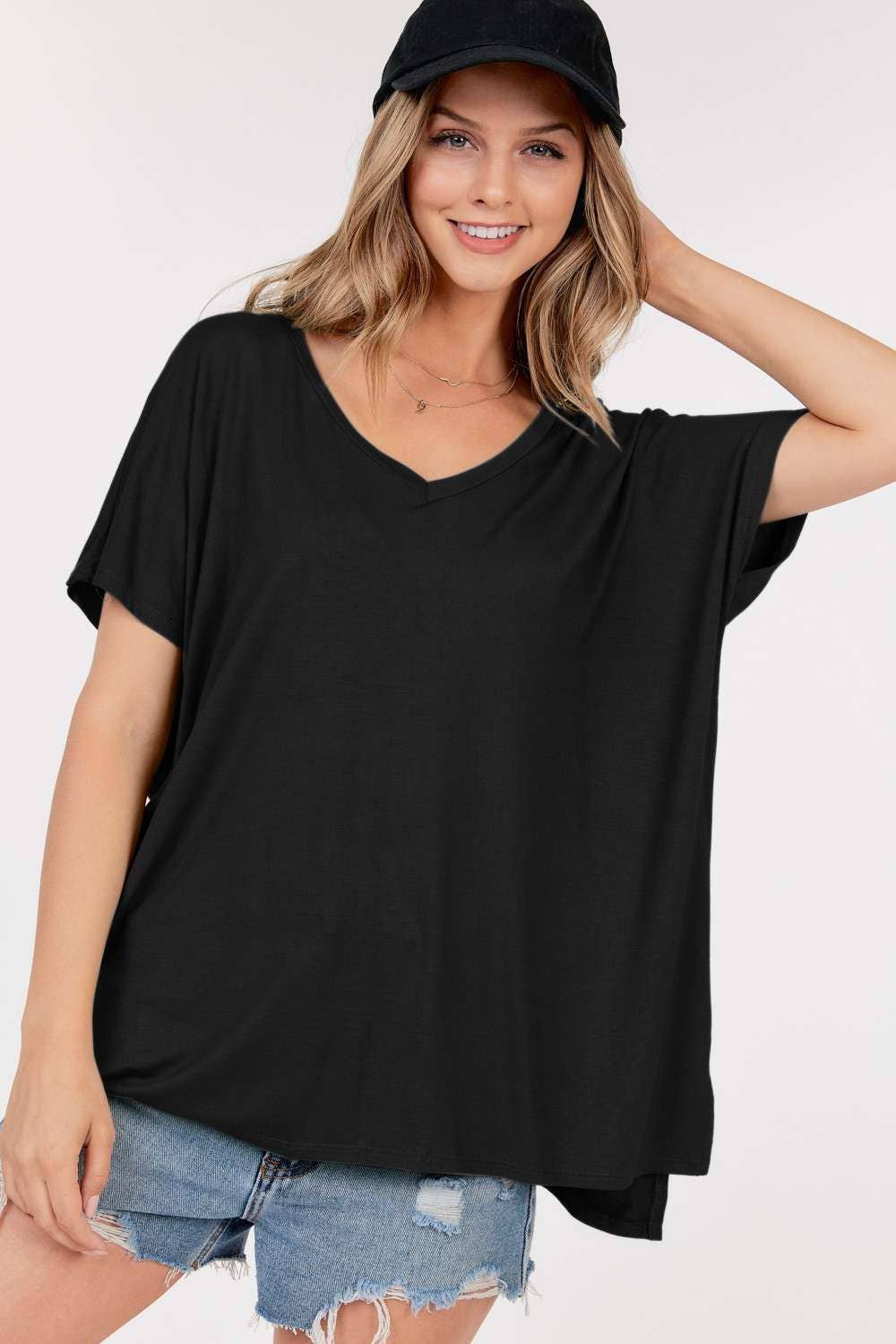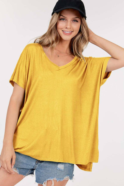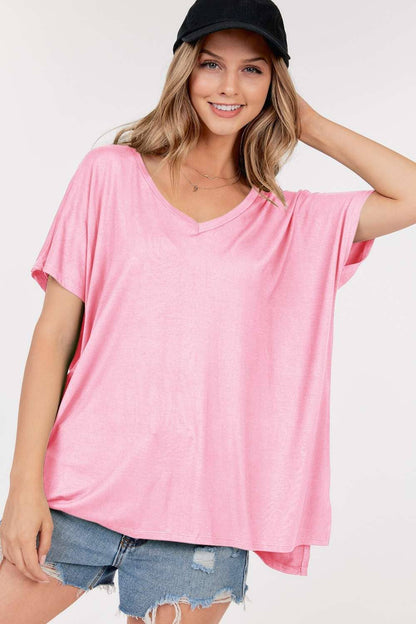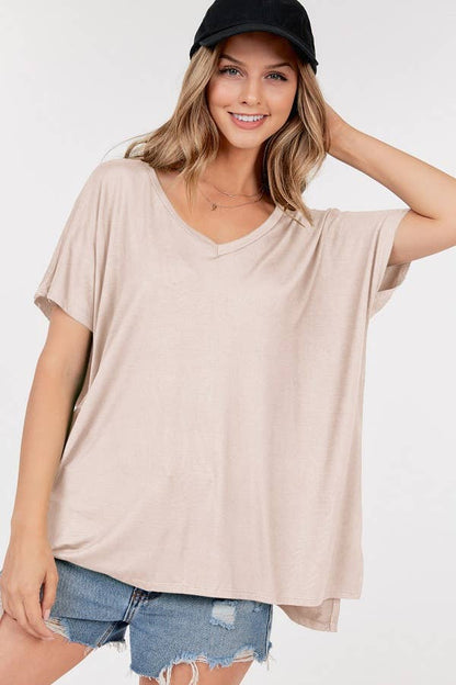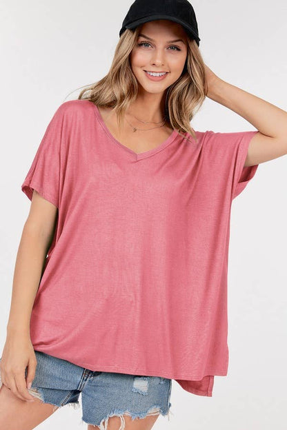 Basic Short Sleeve V Neck Boxy Top