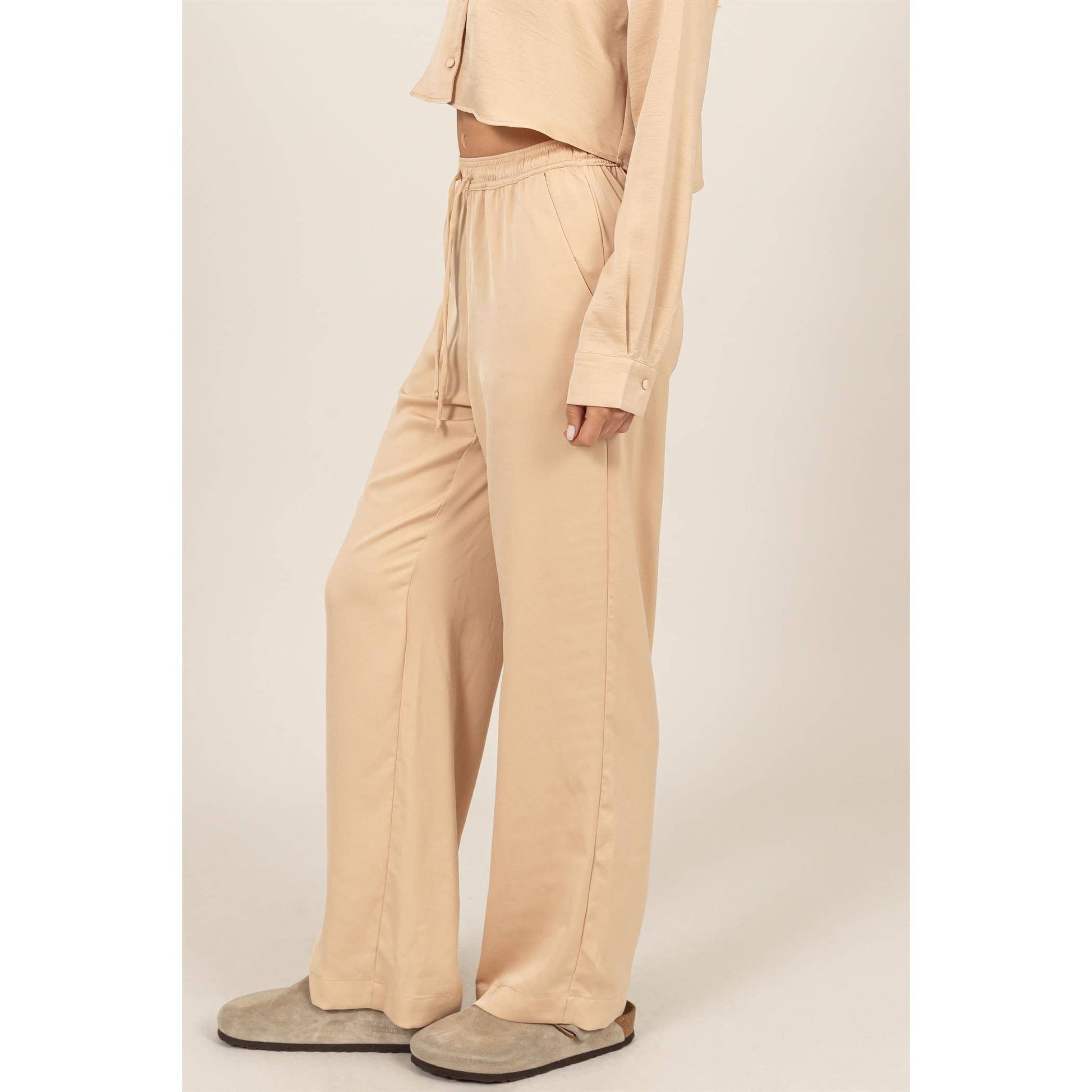 EXPERIENCE ULTIMATE COMFORT AND STYLE WITH THESE RELAXED DRAWSTRING WAIST PANTS. DESIGNED WITH A LOOSE FIT AND AN ADJUSTABLE DRAWSTRING WAISTBAND, THESE PANTS OFFER A CUSTOMIZED FIT AND ALL-DAY COMFORT. PERFECT FOR LOUNGING OR CASUAL WEAR, THESE PANTS FEATURE SIDE POCKETS FOR ADDED FUNCTIONALITY. PAIR THEM WITH A MATCHING TOP OR YOUR FAVORITE TEE FOR A RELAXED YET STYLISH LOOK.