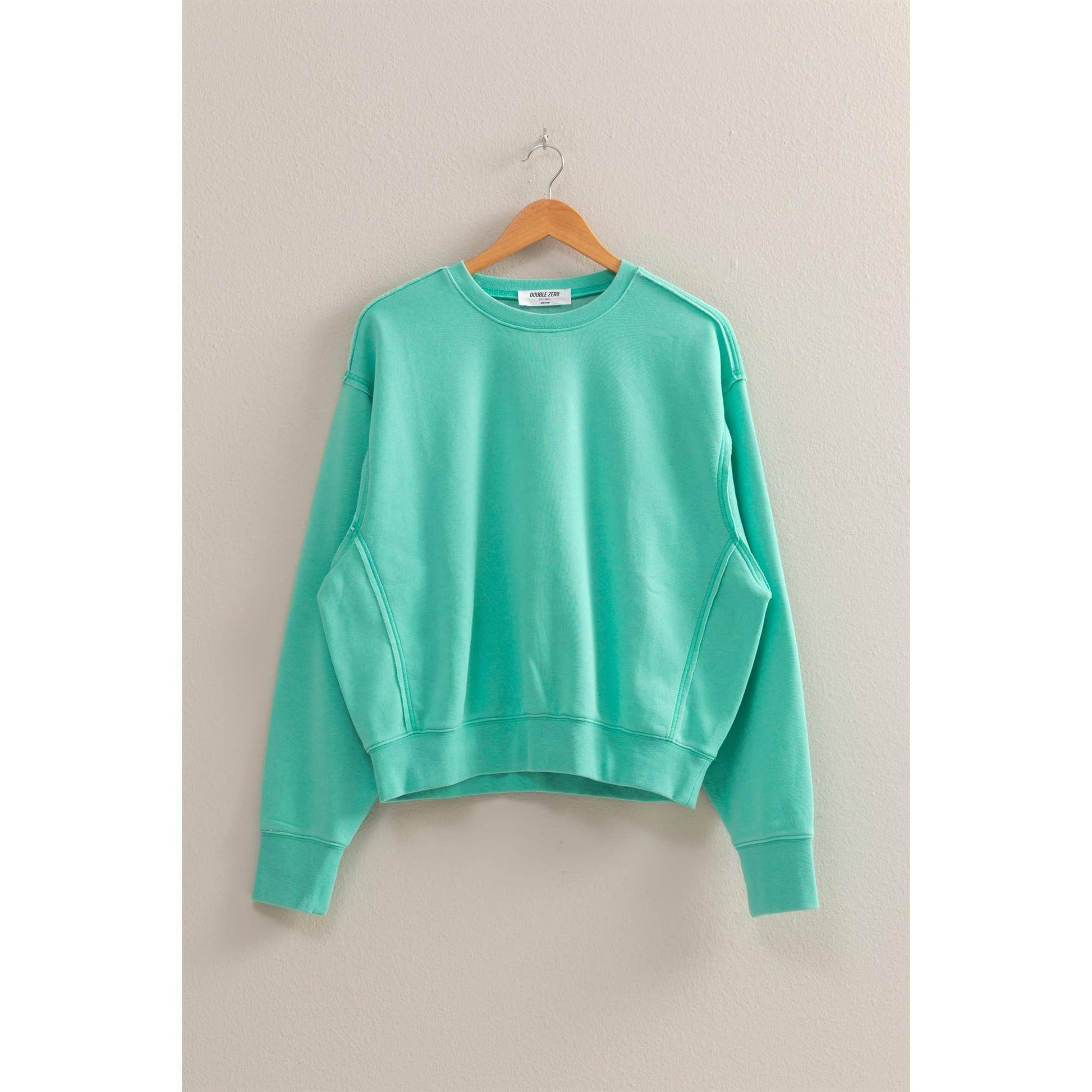 Take A Moment To Get Comfy In This Soft Brushed Terry Sweatshirt That Shapes A Pullover Style Piece With A Crew Neckline, Long Sleeves With Drop Shoulder, And An Oversized, Boxy Bodice. Contrasting Banded Accents On The Cuffs And Hem Complete The Look.