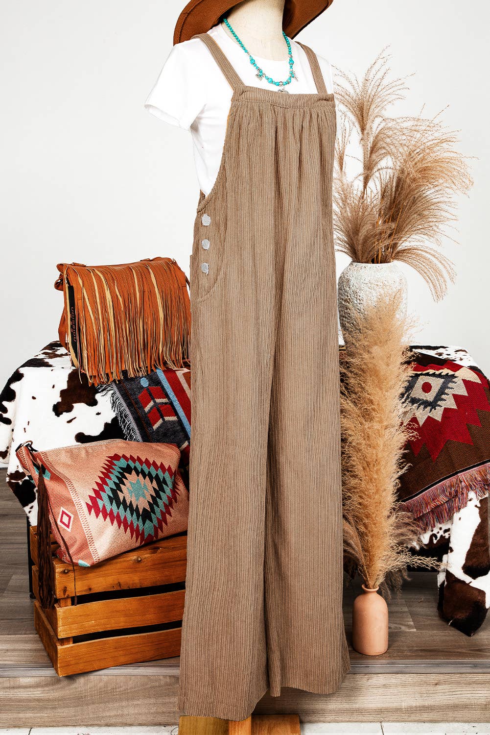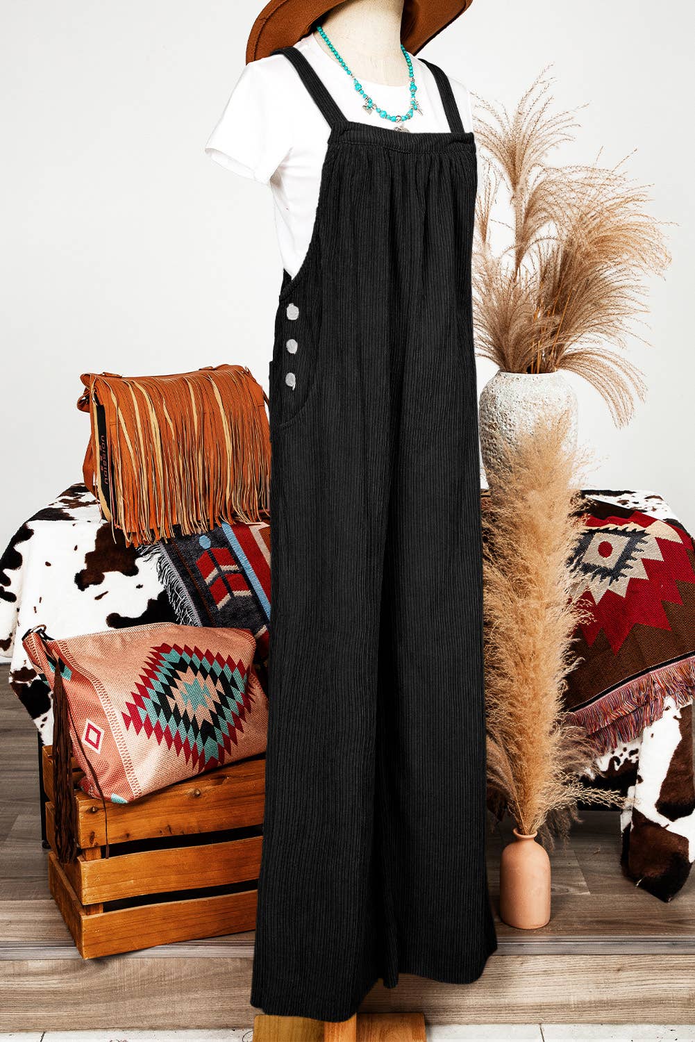 Fashion-W Fall Solid Pocketed Loose Fit Corduroy Overall