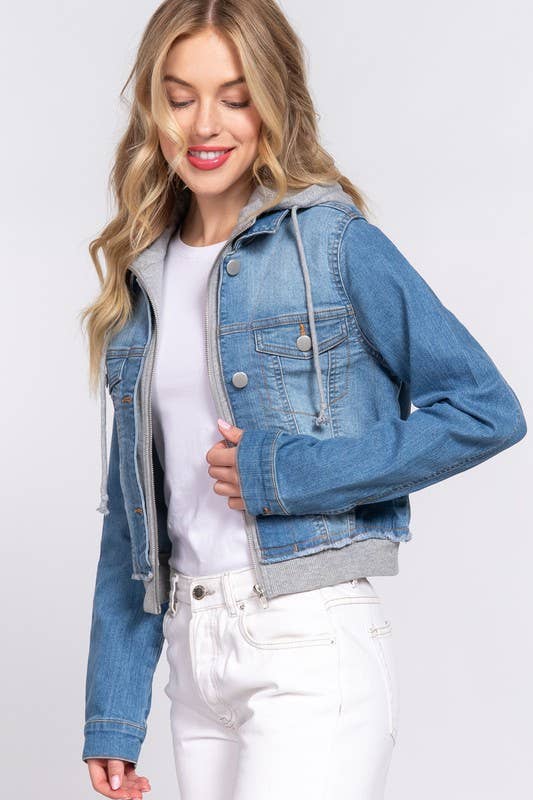 Long Sleeve Contrast Terry Hoodie Denim Jacket