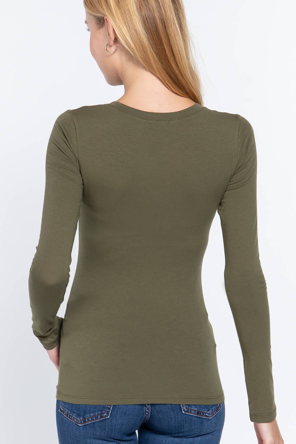 LONG SLEEVE CREW NECK COTTON SPANDEX JERSEY TOP