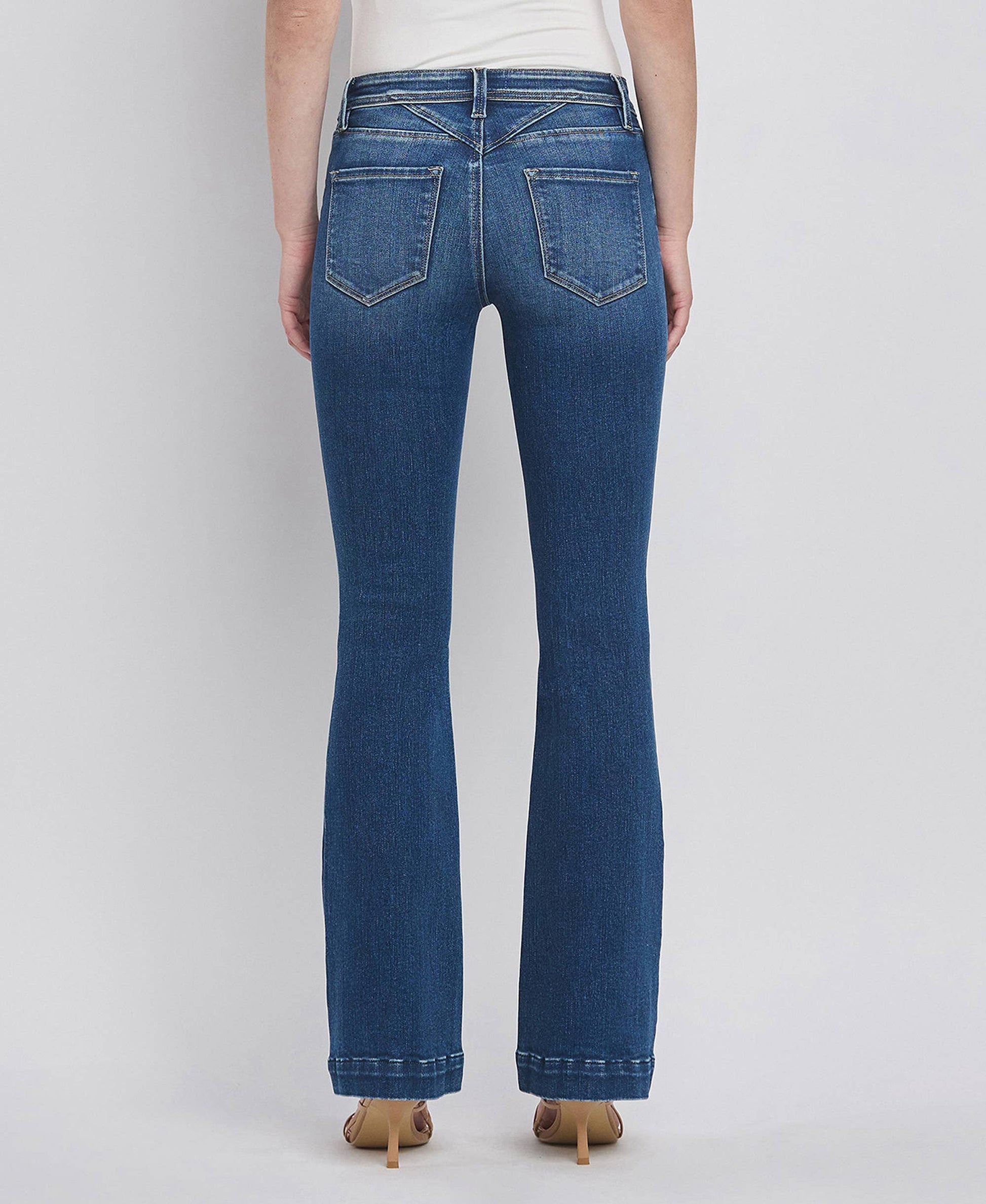 LOW RISE BACK YOKE BOOTCUT JEANS COMFORT STRETCH DENIM, LOW RISE WAIST, BACK YOKE, FULL LENGTH, BOOTCUT JEANS F. RISE: 8 1/2" / INSEAM: 33" / LEG OPENING: 18 1/2" MODEL IS 5'10" WEARING SIZE 26