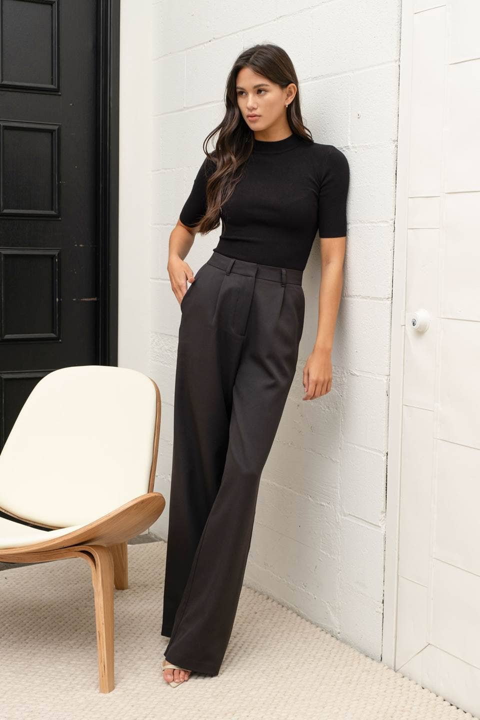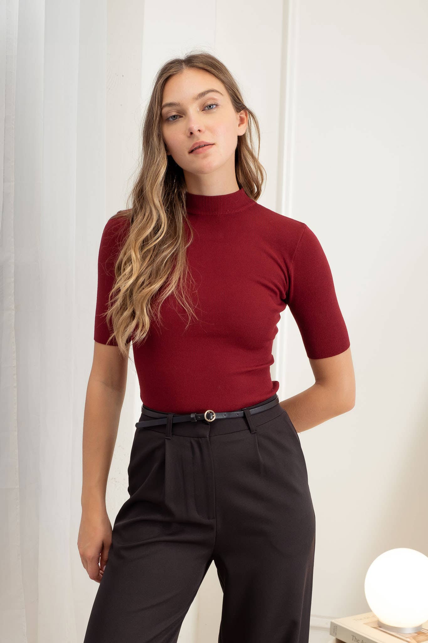 SHORT SLEEVE MOCK NECK SWEATER KNIT TOP