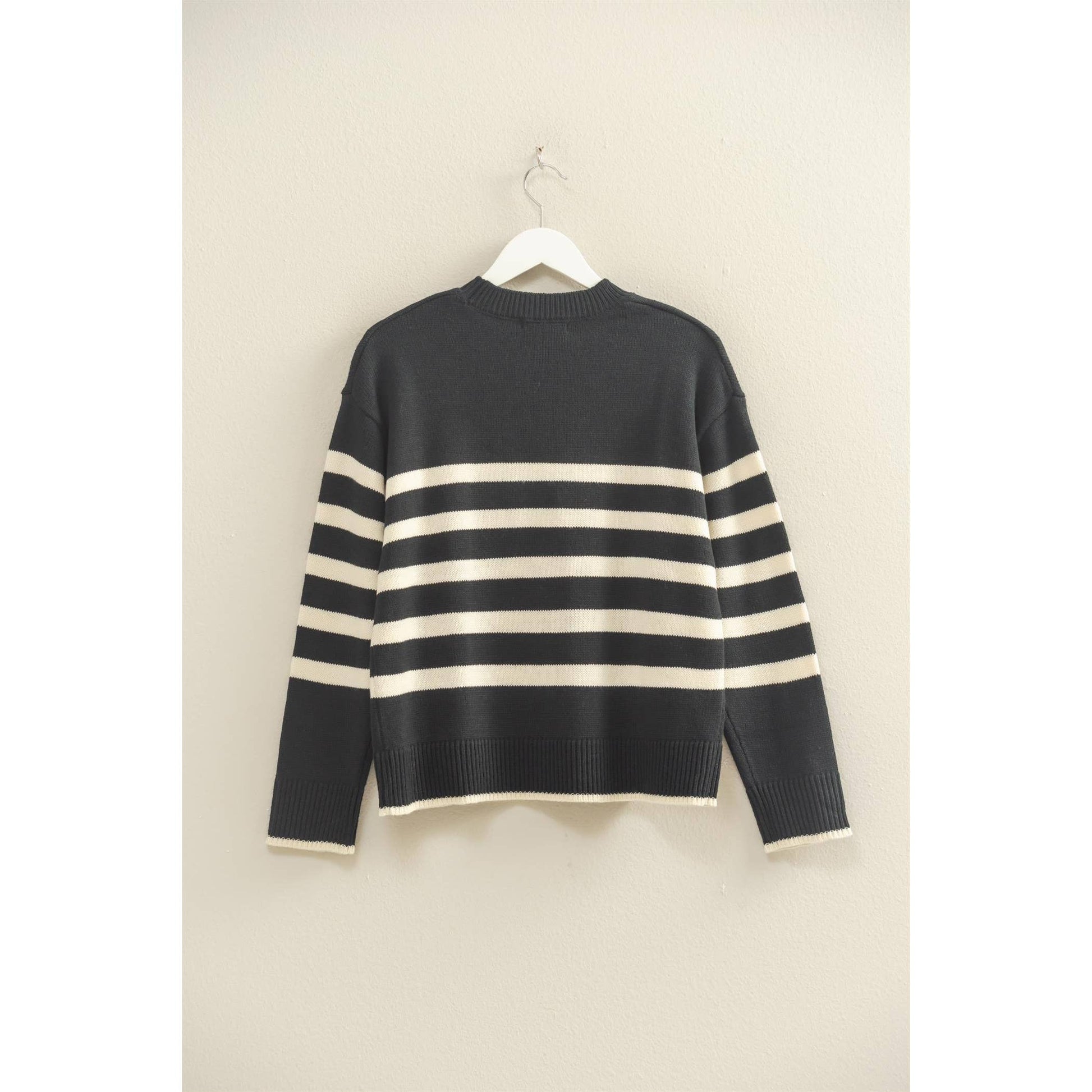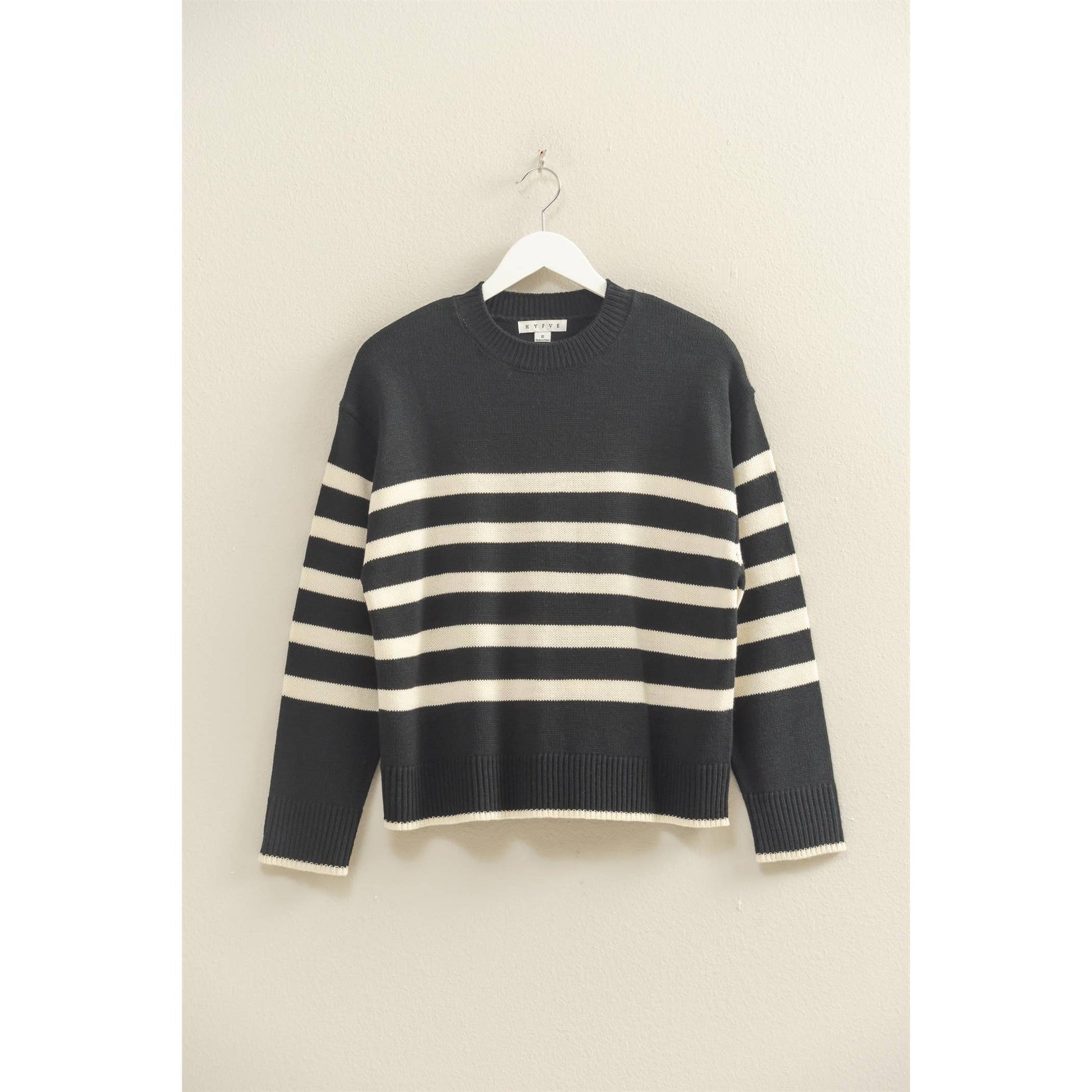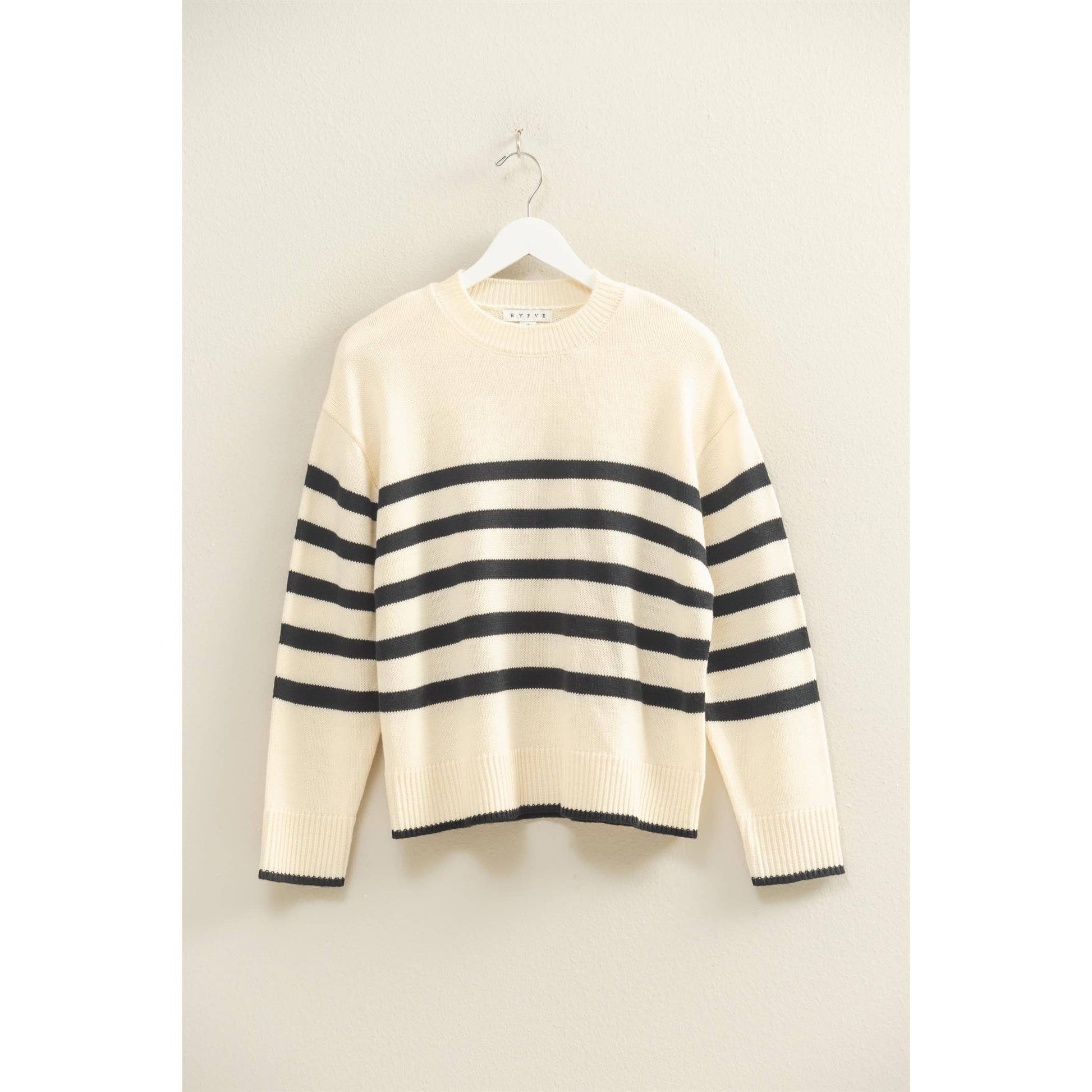 Embrace effortless style with this crew neck sweater featuring a timeless striped pattern. Perfect for transitioning seasons, it offers a relaxed fit that promises comfort and versatility. Pair it with distressed jeans or layer over a collared shirt for a smart-casual look, suitable for a relaxed weekend outing or a casual office day.
