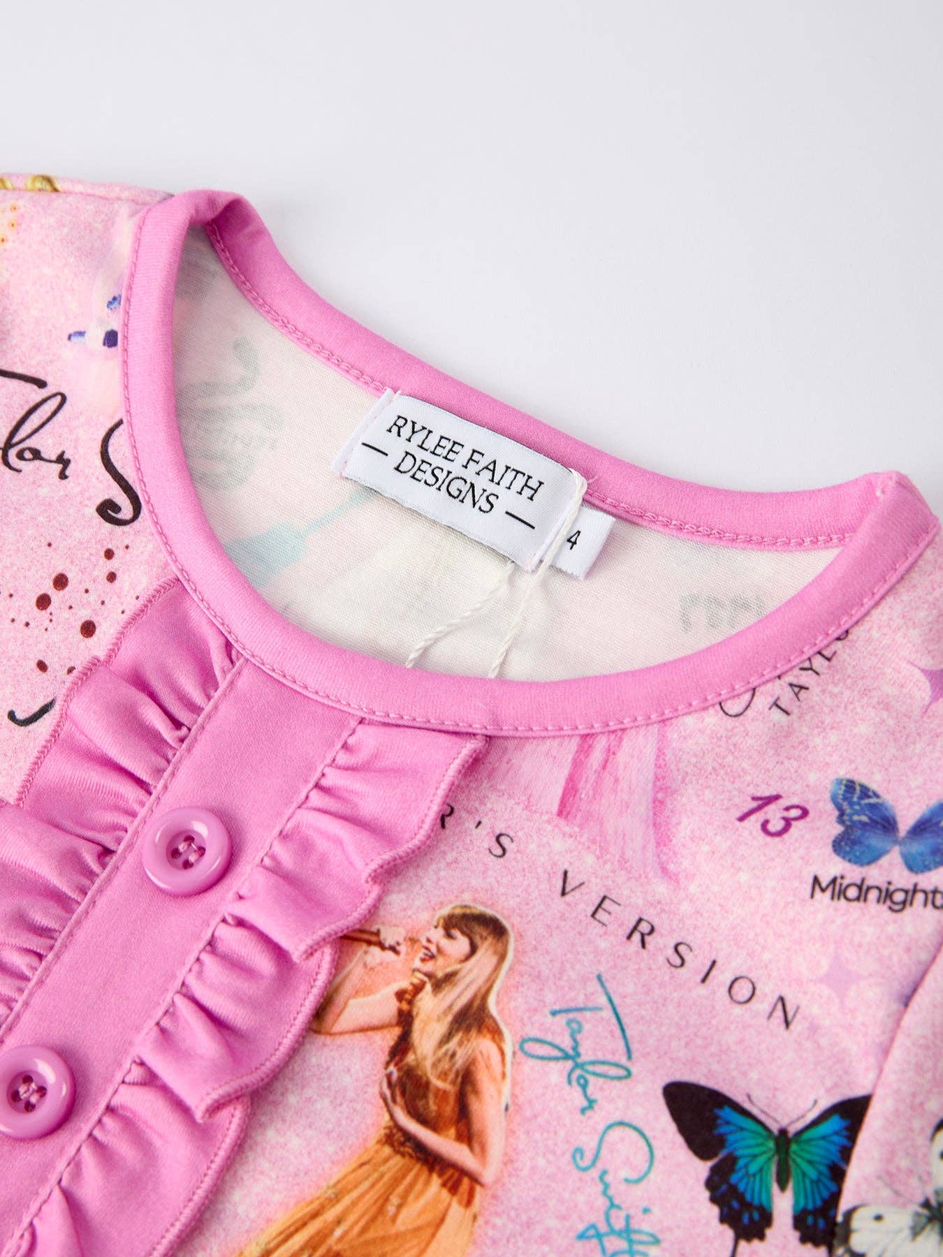 TS Printed Girls Purple Long Sleeve Pajamas Set